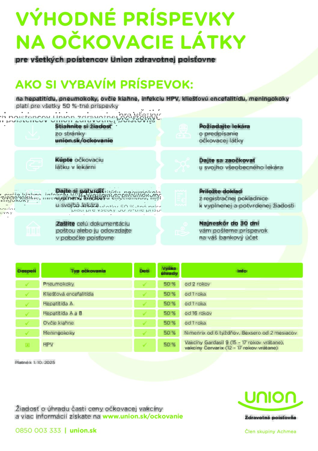 My sme sa rozhodli ísť nad rámec zákonných povinností a podporiť tak ešte viac ochranu zdravia. Našim poistencom a poistenkám poskytneme príspevky aj na očkovacie látky, ktoré sú nepovinné, vďaka čomu ušetria polovicu z ich ceny.